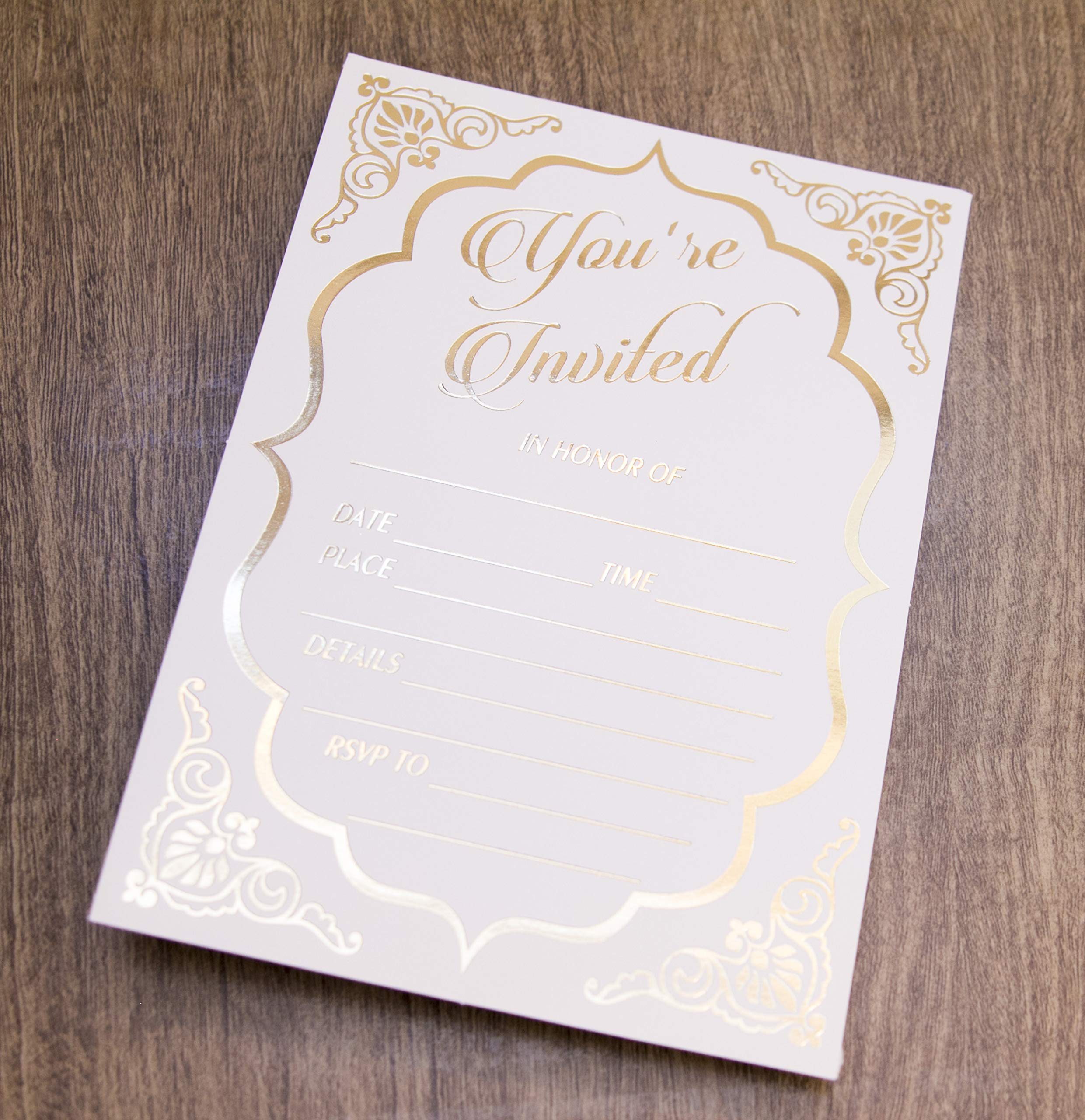 Amazon Com Wedding Fill In Invitations Gold Foil 25 Pack Wedding Invitation Hot Stamp Press Party Invitations Birthday Gold 2 Home Kitchen